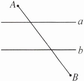 B 提示:如图,作M'N'⊥a,分别交a,b于点M',N',连接AM'并沿M'N'方向平移至A'N',连接A'B交直线b于点N,过点N作NM⊥a于点M,则此时的M,N即为所要找的点.连接AM,易证△AMM'≌△A'NN',则A'N=AM,AM'=A'N'.易知AA'=M'N'=4.所以AM+NB=A'N+NB=A'B(连接N'B,则AM'+N'B=A'N'+N'B≥A'B,当点N'与点N重合时取等号).过点B作BE⊥AA',交AA'的延长线于点E,易得AE=2 + 4 + 3=9,A'E=5.在Rt△AEB中,BE²=AB² - AE²=39.在Rt△A'EB中,A'B²=A'E²+BE²,解得A'B=8.
