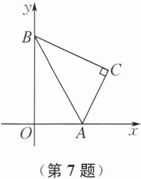 (3, 13)或(13, 10)或(13/2, 13/2) 提示:如图,当B为直角顶点时,则BC₁ = BA,过点C₁作C₁D⊥y轴于点D,易证△AOB≌△BDC₁,所以DC₁ = OB = 3,BD = AO = 10,所以OD = OB + BD = 13,所以点C₁(3, 13);当A为直角顶点时,同理可得点C₃(13, 10);当C为直角顶点时,由等腰三角形“三线合一”的性质可知,C₂是AC₁的中点,由中点坐标公式,得点C₂(13/2, 13/2). 综上所述,点C的坐标为(3, 13)或(13, 10)或(13/2, 13/2).