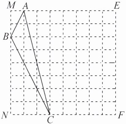 11. 如图1,在8×8的方格纸(每个小方格的边长均为1个单位长度)上有一张三角形纸片,其顶点$ A,B,C $都在方格纸的格点上,将纸片$ ABC $以每秒1个单位长度的速度沿水平方向匀速向右平移,当点$ C 落在网格右侧边界 EF $上时,立刻将纸片$ ABC $以每秒2个单位长度的速度沿水平方向匀速向左平移,当点$ B 落在左侧边界 MN $上时,我们称纸片$ ABC $完成了1次“往返平移运动”,随即纸片$ ABC $继续重复进行上述的“往返平移运动”.设这张方格纸位于$ AC 所在直线左侧且不被纸片 ABC 遮挡的图形面积为 y $,平移纸片$ ABC 所用时间为 x $ s.