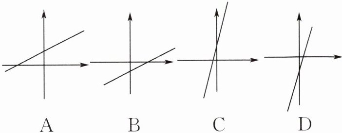 B 提示:如图,画出直线y = kx + 2与函数y = |x|的大致图象,观察图象,可知直线y = kx + 2必过点(0,2),且绕该点旋转.当y = kx + 2与y = x(x ≥ 0)有一个交点时,其与y = - x(x < 0)不相交,此时k ≤ - 1;当y = kx + 2与y = - x(x < 0)有一个交点时,其与y = x(x ≥ 0)不相交,此时k ≥ 1.综上所述,k的取值范围是k ≥ 1或k ≤ - 1.