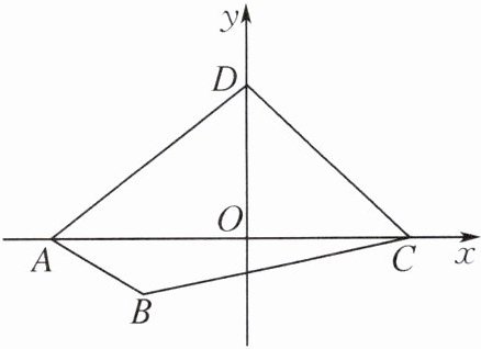 y = $\frac{1}{9}$x + $\frac{2}{3}$ 提示:如图,设直线l与DC交于点E,则四边形ABCE的面积为$\frac{1}{2}$S△ADC + $\frac{1}{2}$S△ABC = $\frac{1}{2}$×$\frac{1}{2}$×(6 + 4)×4 + $\frac{1}{2}$×$\frac{1}{2}$×(6 + 4)×2 = 15,所以S△ACE = 15 - S△ABC = 5,所以点E纵坐标为1.设直线CD函数表达式为y = kx + b.因为点C(4,0),D(0,4),所以直线CD函数表达式为y = - x + 4,所以当y = 1时,x = 3,所以点E(3,1).因为点A(- 6,0).设直线l函数表达式为y = mx + n,所以$\begin{cases}1 = 3m + n\\0 = - 6m + n\end{cases}$,解得$\begin{cases}m = \frac{1}{9}\\n = \frac{2}{3}\end{cases}$,所以直线l函数表达式为y = $\frac{1}{9}$x + $\frac{2}{3}$.