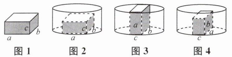 7. 将如图1所示的长方体石块$(a>b>c)$放入一圆柱形水槽内,并向水槽内匀速注水,速度为$vcm^{3}/s$,直至注满水槽为止.石块可以用三种不同的方式完全放入水槽内,如图2至图4所示,在这三种情况下,水槽内的水深h(cm)与注水时间t(s)之间的函数关系如图5至图7所示,根据图象解决下列问题: