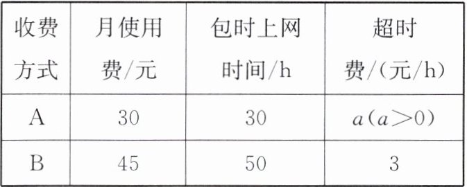|收费方式|月使用费/元|包时上网时间/h|超时费/(元/h)|