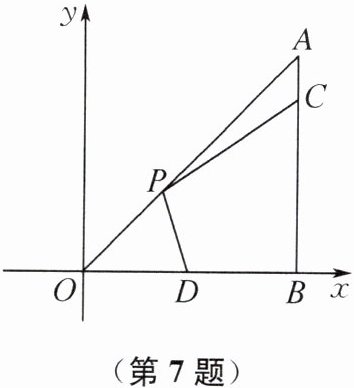 7. 如图,在平面直角坐标系中,Rt△ABO 的顶点 B 在 x 轴上,∠ABO= 90°,AB= OB,点 C(10,8)在边 AB 上,D 为 OB 的中点,P 为边 OA 上的动点(不与点 O,A 重合).下列说法正确的是______ (填序号).