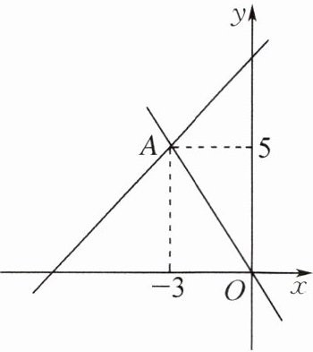 )① $ k>0,a<0 $;② $ y= ax(a \neq 0) $ 图象,y 随自变量 x 的增大而减小;③不论 k 为何值,一次函数 $ y= kx+3k+5(k \neq 0) $ 的图象都经过定点 A,且点 A 的坐标为 (-3,5);④方程组 $ \begin{cases} y= kx+3k+5, \\ y= ax \end{cases} $ 的解是 $ \begin{cases} x= -3, \\ y= 5. \end{cases} $
