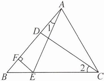 2. [推理能力]如图,在△ABC中,点E在边BC上,点D在边BA上,过点E作EF⊥AB于点F,∠B= ∠1+∠2,AE= CD,BF= 4/3,则AD的长为______.