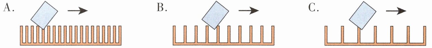 3. 小科用同一薄塑料片以相同的速度划过以下三个疏密度不同的梳子,发出声音最高的是(