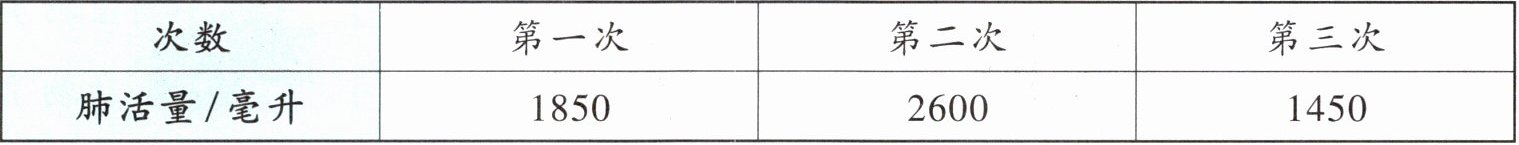 | 肺活量/毫升 | 1850 | 2600 | 1450 |