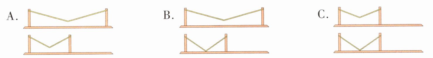 8. (名校期末题)先将皮筋绷在支架上,再将皮筋按压到一定程度后放手,皮筋发声。下列三组实验中,能证明“声音强弱与振动幅度大小有关”的是(