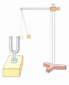 3. 最后,萌小牛用悬挂的泡沫小球来观察不同情况下音叉的振动情况(如右图)。他发现泡沫小球碰到轻轻敲击后的音叉时摆动幅度比较