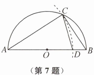 7. 如图,以 AB 为直径的半圆 O 经过点 C,以点 A 为圆心,AC 为半径画弧交 AB 于点 D,连接 CD.若$CD= \frac{1}{2}AB$,则∠BCD 的度数为______