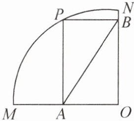 2. 如图,四边形 PAOB 是扇形 OMN 的内接矩形,顶点 P 在$\overset{\frown}{MN}$上,且不与点 M,N 重合.当点 P 在$\overset{\frown}{MN}$上移动时,矩形 PAOB 的形状、大小随之变化,其中$PA^{2}+PB^{2}$的值的变化情况是(