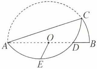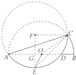 2√2 - 2 提示:如图,连接OC,CE,把⌢AEC所在的圆补全为⊙F并连接FC,FE,可知点F与点O关于AC对称,半径为2,所以∠FCA=∠ACO.因为OA=OC,所以∠ACO=∠CAO.所以∠FCA=∠CAO,所以CF//AB.因为E是⌢AD的中点,所以FE⊥AB,所以∠F=∠BGE=90°.因为FC=FE=2,所以在Rt△CFE中,由勾股定理,得EC=√(FC²+FE²)=2√2.因为OE≥EC - OC(当点C,O,E依次共线时,取等号),即OE≥2√2 - 2,所以OE长的最小值为2√2 - 2.