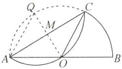 7. 如图,在半圆O中,直径$AB= 4$,C是半圆上一点,将$\overset{\frown}{AC}$沿弦AC折叠交AB于点D,E是$\overset{\frown}{AD}$的中点,连接OE,则OE长的最小值为______.