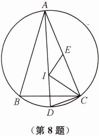 8. 如图,点 I 为△ABC 的内心,连接 AI 并延长交△ABC 的外接圆于点 D,AI= 2CD,E 为弦 AC 的中点,连接 EI,IC.若 IC= 6,ID= 5,则 IE 的长为______