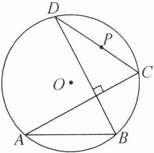12. 如图,$\odot O$的半径为5,弦$AB= 6$,弦$AC⊥BD$,P 为 CD 的中点.若点 D 在圆上逆时针运动的路径长为$\frac {5π}{3}$,则点 P 运动的路径长为______.