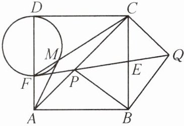 13. 如图,在边长为$2\sqrt {2}$的正方形 ABCD 中,P 是对角线 AC 上的一个动点(点 P 不与点 A,C 重合),连接 BP,将 BP 绕点 B 顺时针旋转$90^{\circ }$得到 BQ,连接 QP,与 BC 交于点 E,QP 的延长线与 AD(或 AD 的延长线)交于点 F,连接 CF,以 DF 为直径的圆交 CF 于点 M.