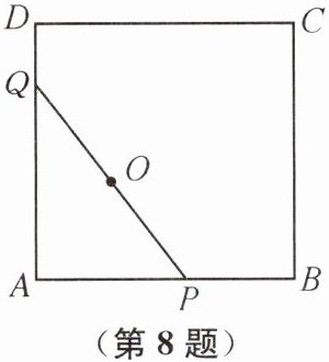 8. 如图,以 AB 为边作边长为8的正方形 ABCD,动点 P,Q 在正方形 ABCD 的边上运动,且$PQ= 8$.若点 P 从点 A 出发,沿$A→B→C→D$的路线,向点 D 运动,点 Q 只能在线段 AD 上运动.在点 P 从点 A 到点 D 的运动过程中,PQ 的中点 O 所经过的路径长为______.