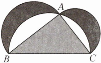 A 提示:设$BC=2r_{1},AB=2r_{2},AC=2r_{3}$,则$r_{1}^{2}=r_{2}^{2}+r_{3}^{2}$.易知$S_{1}=\frac{1}{2}×4r_{2}r_{3}=2r_{2}r_{3}$,$S_{Ⅲ}=\frac{1}{2}\pi r_{1}^{2}-2r_{2}r_{3}$,$S_{Ⅱ}=\frac{1}{2}\pi r_{3}^{2}+\frac{1}{2}\pi r_{2}^{2}-S_{Ⅲ}=\frac{1}{2}\pi r_{3}^{2}+\frac{1}{2}\pi r_{2}^{2}-\frac{1}{2}\pi r_{1}^{2}+2r_{2}r_{3}=2r_{2}r_{3}$,所以$S_{1}=S_{Ⅱ}$,即$P_{1}=P_{2}$.