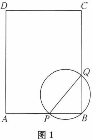(2)①5 提示:易知PQ的中点是圆心M所在位置.连接AC,BD,相交于点O.由点P,Q运动速度之比与AB,BC长度之比相等可知,圆心M在对角线BD上.结合题图,由运动的初末位置可知,点M运动的路径长是$OB=\frac{1}{2}BD = 5$cm.