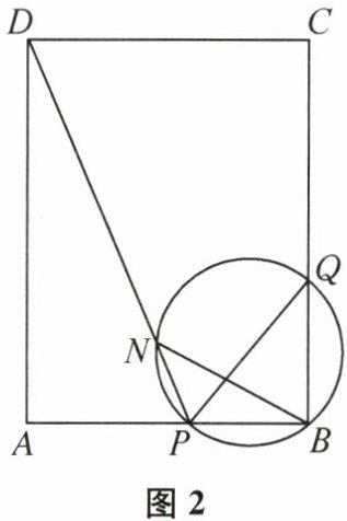 (3)如图2,连接PD,交$\odot M$于点N,当$\angle APD= \angle NBQ$时,求t的值.