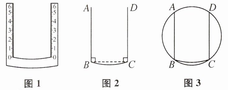 3. 图1是一把“U形”尺,图2是该尺内侧的示意图.已知边$AB⊥BC$,边$CD⊥BC$,$AB= CD= 6cm,BC= 4cm.$
