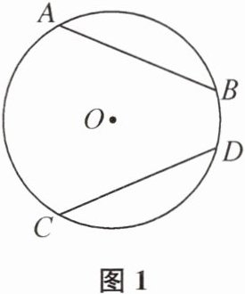 如图1,连接OB,OD,过点O作OE⊥AB,OF⊥CD,垂足分别为E,F.所以$BE=\frac{1}{2}AB$,$DF=\frac{1}{2}CD$.因为AB=CD,所以BE=DF.又因为OB=OD,所以Rt△OBE≌Rt△ODF(HL),所以OE=OF(或由勾股定理得到).