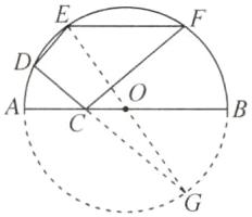 D 提示:如图,补全另一半圆,延长 DC 交⊙O于点G,连接OE,OG.由EF//AB,易证$\overset{\frown}{AE}=\overset{\frown}{BF}$.因为∠BCG=∠ACD=∠BCF,所以由圆的对称性,可知$\overset{\frown}{AE}=\overset{\frown}{BF}=\overset{\frown}{BG}$,CG=CF=c,所以∠BOG=∠AOE,DG=CD+CG=b+c,所以点E,O,G共线,所以EG是⊙O的直径,且EG=AB=a.由勾股定理得$DE^{2}=EG^{2}-DG^{2}$,所以$DE^{2}=a^{2}-(b+c)^{2}$.