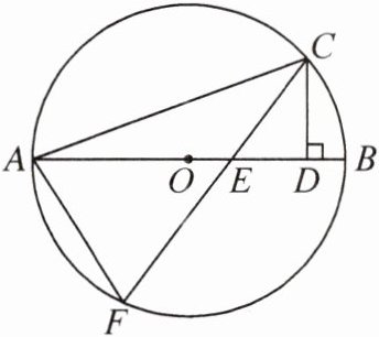 2√3 提示:连接BC,BF,OF,延长CD交⊙O于点H,过点F作FN⊥AB于点N.易得OF=OA=3,AE=AB-BE=4,∠ABF=∠ACF=∠FCH,⌢BC=⌢BH,所以∠BFC=∠HCB,所以∠BAF=∠BCE=∠HCB+∠FCH=∠BFC+∠ABF=∠AEF,所以AF=EF.易得AN=EN=1/2AE=2,所以ON=AO-AN=1.由勾股定理,可得FN²=OF²-ON²=8,所以AF=√(FN²+AN²)=2√3.
