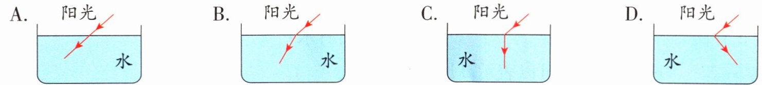 3. 阳光斜射着入水水中时,光的传播路线可以表示为( )。