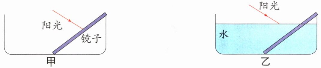 2. 在图甲中画出阳光遇到镜面后的传播路线。___