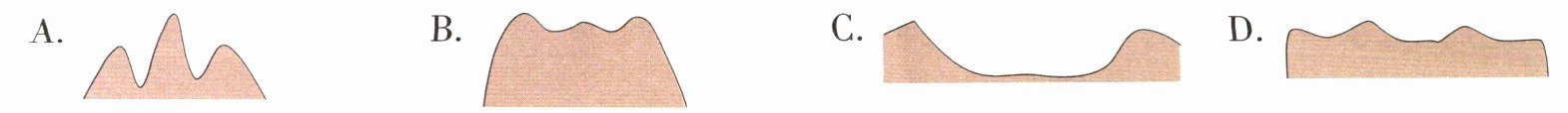 9. (名校期末真题)下列简图中,可以表示高原地形的是( )。