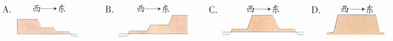 3. (名校期末真题)古诗名句“问君能有几多愁?恰似一江春水向东流”中,“一江春水向东流”是因为我国地势与( )描述的一致。