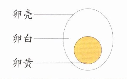 地壳——卵壳;地幔——卵白;地核——卵黄