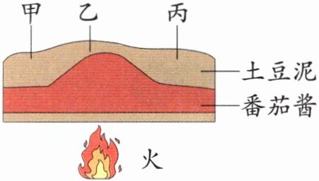 4. 如图,小鹿用土豆泥和番茄酱模拟火山喷发,加热后最容易发生火山喷发的位置是( )。