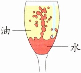 1. 在这个模拟实验中,红色的水、食用油分别代表______、______。