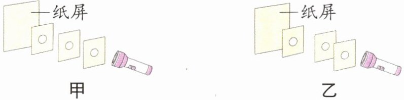 3. 通过实验,我们发现:图______中的纸屏上有光斑,图______中的纸屏上没有光斑。分析以上实验现象,可以得出结论:______。