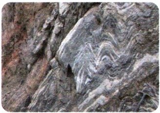 2. 为了探究流纹岩的成因(如右下图),小科做了火山模拟实验。根据实验现象,对形成这种纹路的推理合理的是( )。