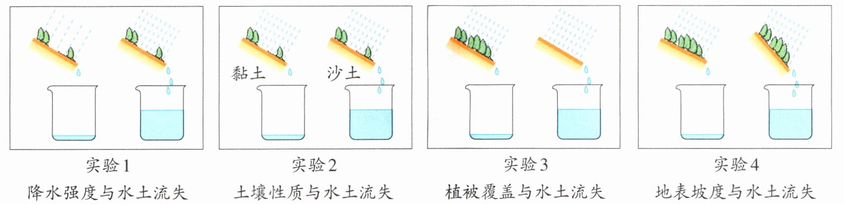 资料4:小科和班级同学开展了“关爱母亲河”综合实践活动,小组通过查阅资料、实验探究等活动,对黄河进行调查研究。下图是“黄土高原水土流失与哪些因素有关”的研究。