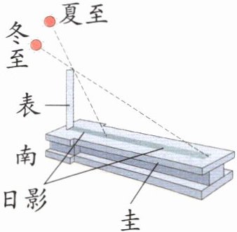 圭表是度量日影长度的一种天文仪器,由“圭”和“表”两个部件组成。垂直于地面的直杆叫“表”,水平放置于地面上刻有刻度以测量影长的标尺叫“圭”。观察记录“表”正午时影子的长短变化可以确定季节的变化。