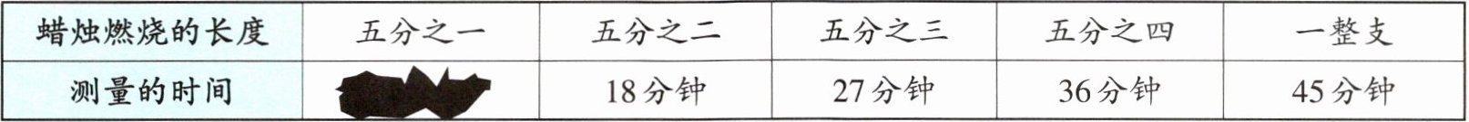 3. 下面是小科记录的蜡烛燃烧时间记录表。表中有一个数据被弄脏看不清了,这个数据最可能是______分钟。
