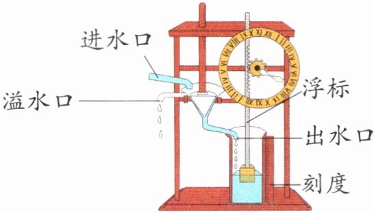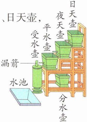 二、右图是古代人们用来计时的水钟,仔细观察,回答下列问题。