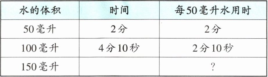 |水的体积|时间|每50毫升水用时|
