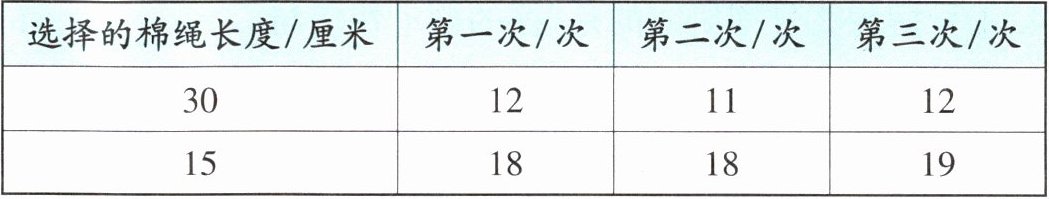 |选择的棉绳长度/厘米|第一次/次|第二次/次|第三次/次|