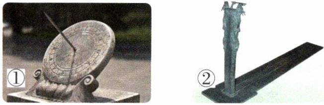 易错点拨:日晷和圭表都是古人利用日影计时的工具,日晷是利用日影方位的变化来计时的,一般用于一天内的计时;圭表是利用日影长度的变化来计时的,一般用于节气或季节的判断。图中①是日晷,②是圭表。答案选D。