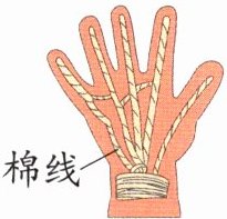 6. [新趋势·创新思维]小鹿制作的手掌模型如图所示,用棉线模拟手背肌肉,模拟先出“石头”再出“布”的手掌动作时,应当( )。