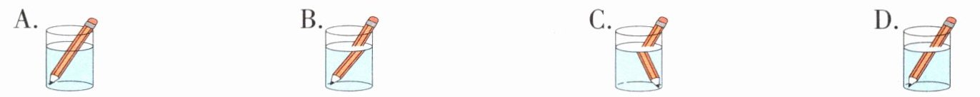 2. 将铅笔放入透明水杯中,我们看到的图像是( )。