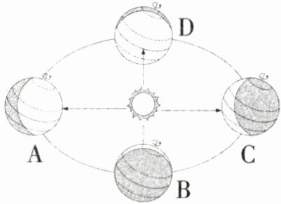 (3)如右图所示,国庆期间地球运行到的位置是( )。
