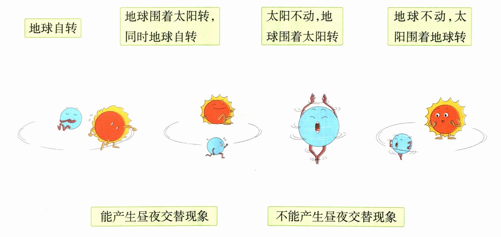 地球自转 地球围着太阳转,同时地球自转 太阳不动,地球围着太阳转 地球不动,太阳围着地球转