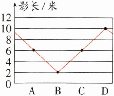 2. A、B、C、D这四天中,日影长度最短的是______,这天是______日。